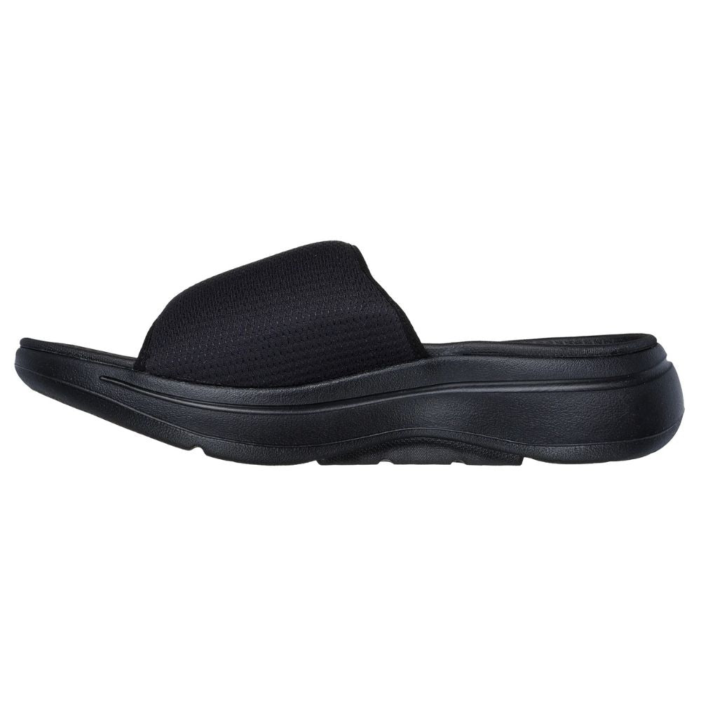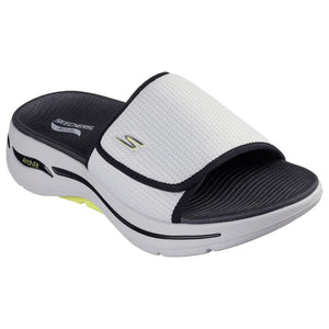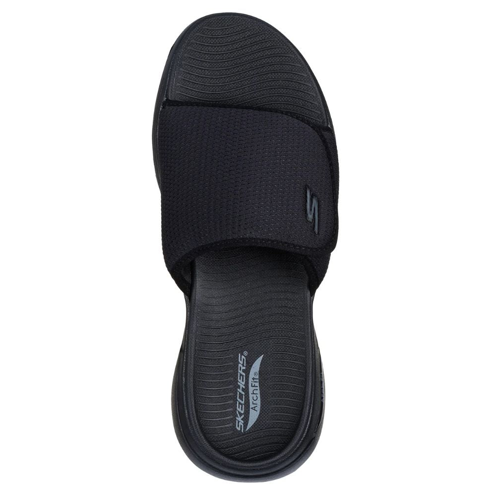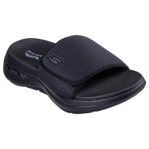 Warm-weather style and supportive comfort combine in Skechers GO WALK® Arch Fit® Sandal - Manta Ray Bay. This slide sandal has been granted the APMA Seal of Acceptance. Featuring an adjustable mesh band upper with lightweight ULTRA GO® cushioning and a contoured Goga Mat® footbed with podiatrist-certified Arch Fit® support.