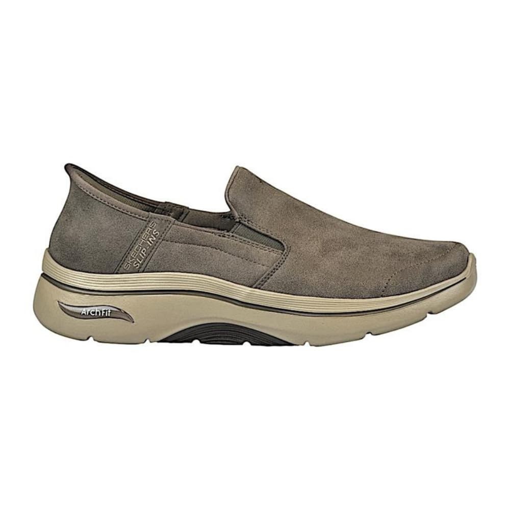 Skechers GO WALK Arch Fit 2.0 slip-on shoes offer effortless comfort and everyday style. These brown textile shoes blend a relaxed aesthetic with supportive design perfect for the modern man. The breathable textile lining and cushioned textile insole work together to cradle your foot, while the durable rubber sole provides reliable traction. Experience a simple elegance and ease of wear - just slip in and go. Reference: 216813-BRN.