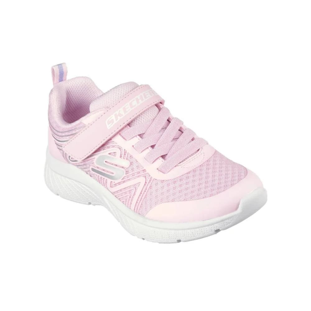 Easy-to-wear comfort meets sporty style in Skechers Microspec Plus - Swirl Sweet. This lightweight design features a mesh and Syntheticupper with stretch laces and an adjustable instep strap.