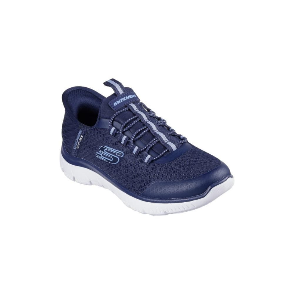 Bring the kids in on the comfort of a Skechers favorite with Skechers Slip-ins®: Summits. Designed with our exclusive Heel Pillow™, this popular slip-on style features a mesh and hotmelt overlay upper with fixed stretch laces and a cushioned Skechers Air-Cooled Memory Foam® comfort insole.