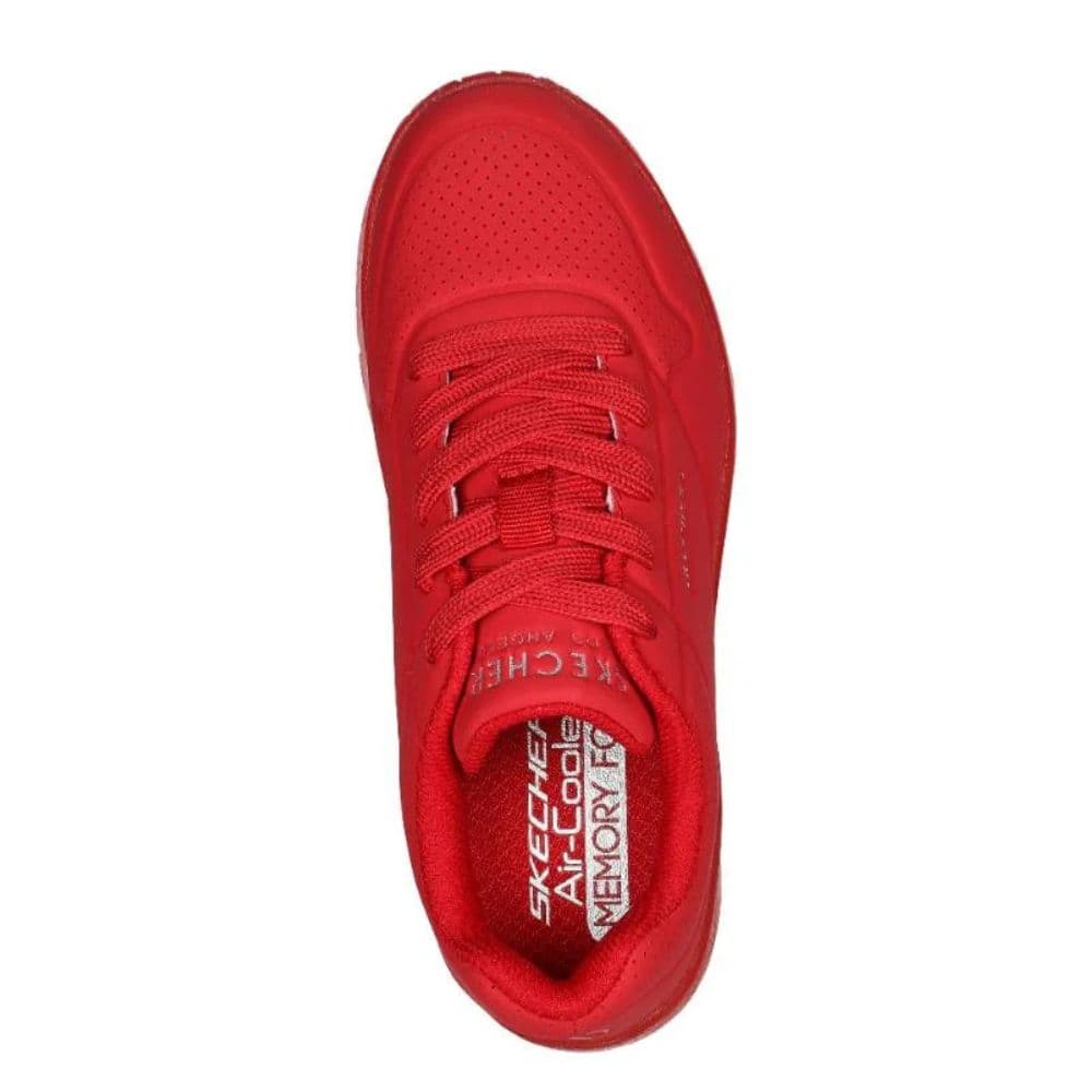 Stand out in sporty style and comfort wearing Skechers Street™ Uno Ice. This fashion lace-up features a synthetic embossed durabuck upper with a Skechers Air-Cooled Memory Foam® insole and a translucent wedge cushioned midsole.