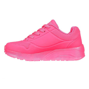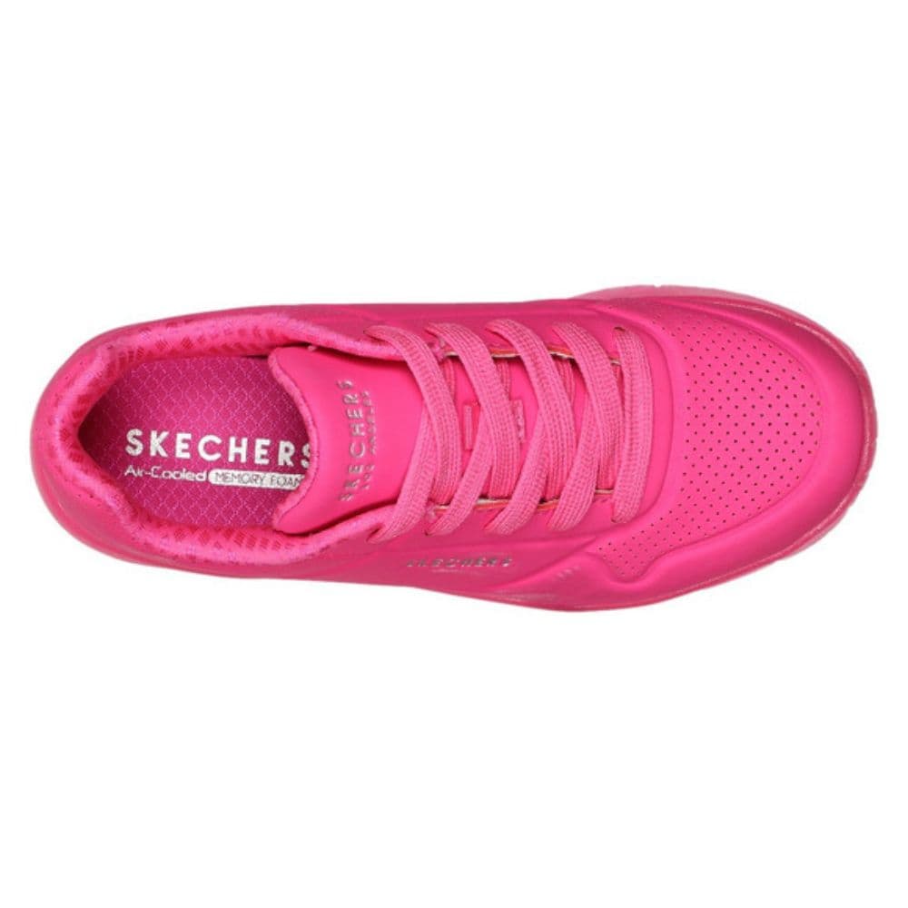 Stand out in sporty style and comfort wearing Skechers Street™ Uno Ice. This fashion lace-up features a synthetic embossed durabuck upper with a Skechers Air-Cooled Memory Foam® insole and a translucent wedge cushioned midsole