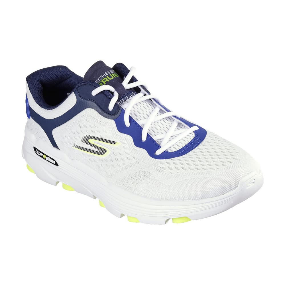 HAVE A FAST DAY™ wearing Skechers GO RUN 7.0™. This lace-up performance trainer with visible technology is the 7th generation in the Skechers GO RUN® series of running shoes. Featuring a two-toned engineered mesh upper with a Skechers Air-Cooled Goga Mat™ insole, high-rebound Hyper Pillar™ technology, and lightweight ULTRA GO® cushioning.