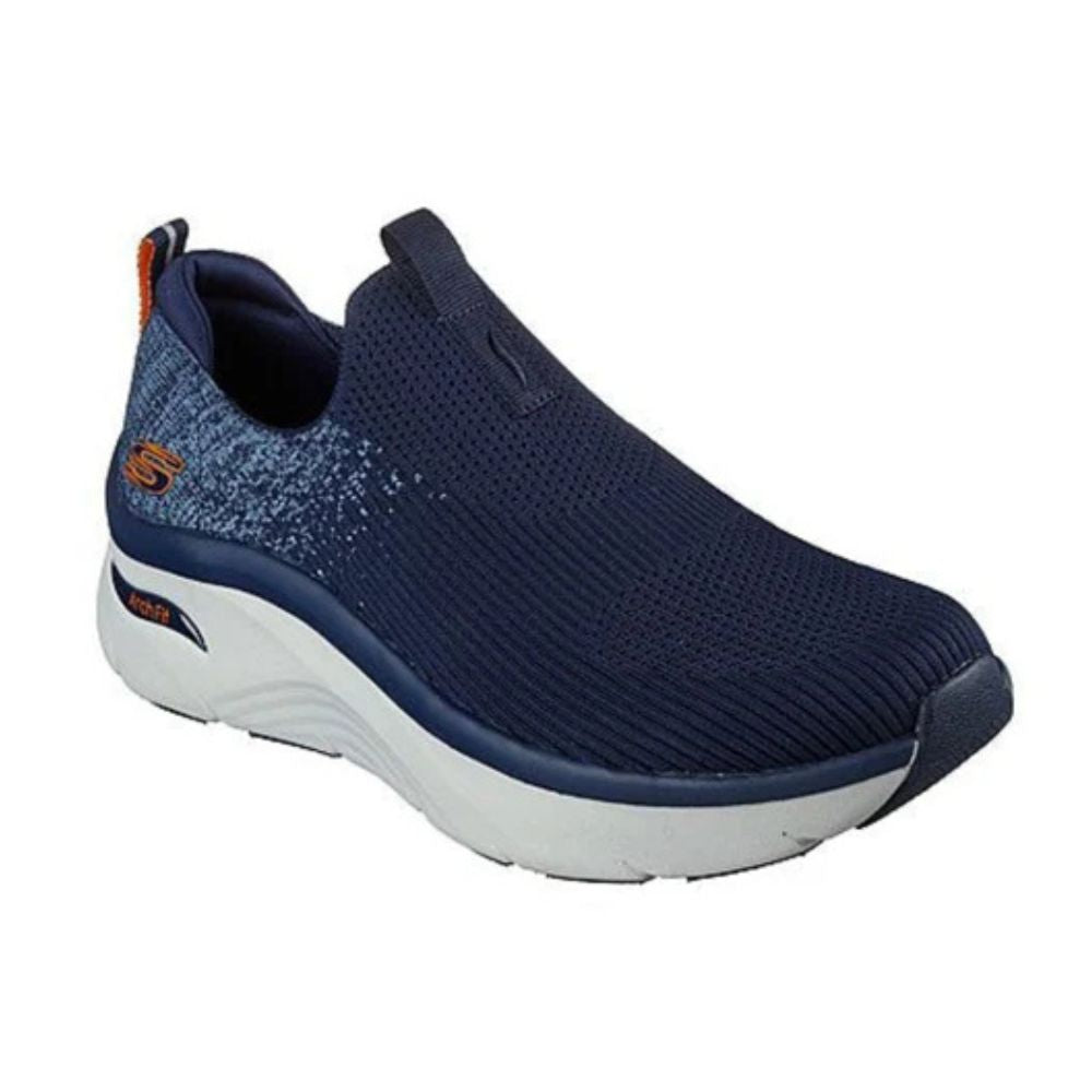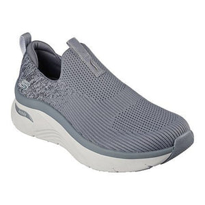 All-day comfort and support combine in Skechers Relaxed Fit: Arch Fit D'Lux. This slip-on features a Stretch Fit engineered knit upper with a removable Arch Fit insole and well-cushioned midsole.