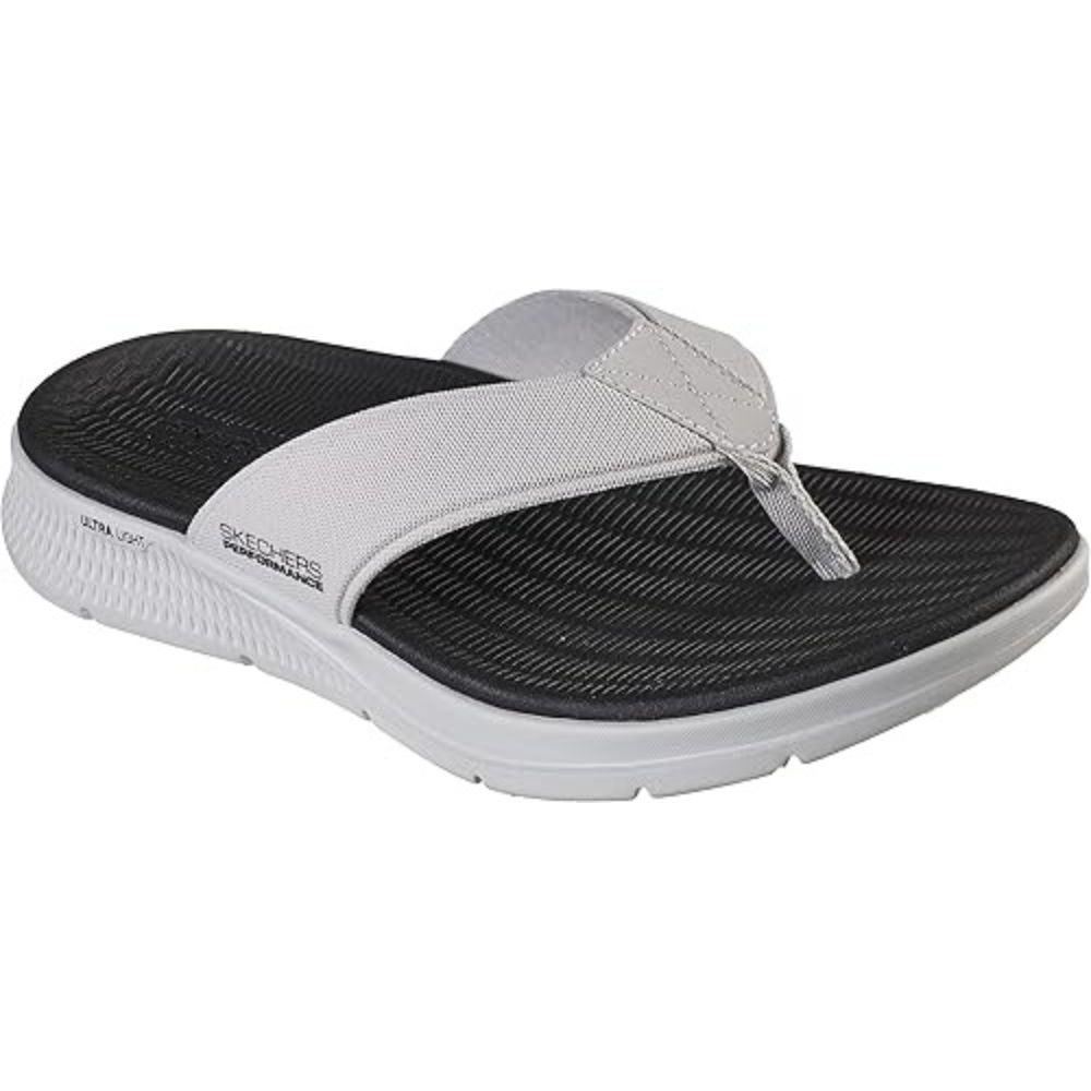 Relax post-workout with a comfort essential in Skechers GO Consistent Sandal - Penthouse. This athletic comfort thong sandal features a Goga Mat® contoured footbed and ULTRA LIGHT cushioning