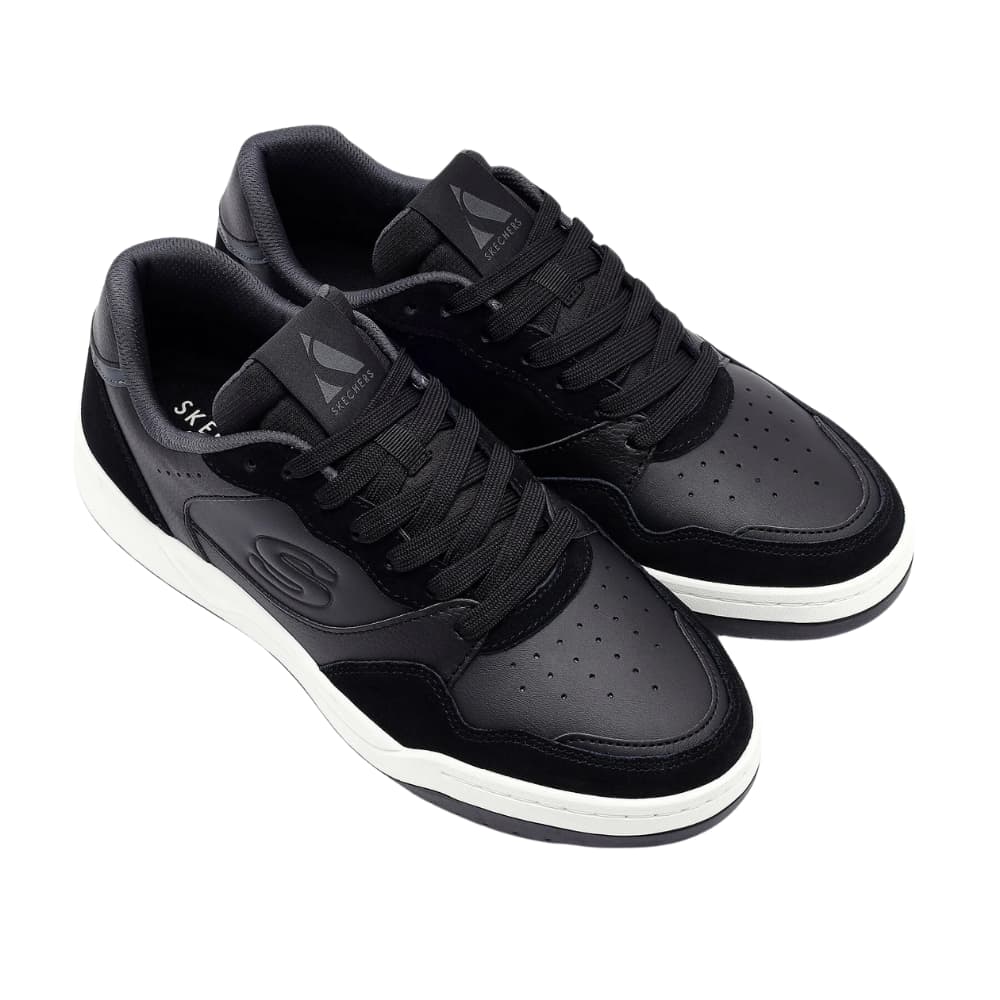 Una gran comodidad combina a la perfección con un clásico actual en la Skechers Koopa - Volley Low Varsity. Zapatillas con cordones con una parte superior de piel y capas superpuestas sintéticas de duraleather y una cómoda plantilla con amortiguación Skechers Air-Cooled Memory Foam®.