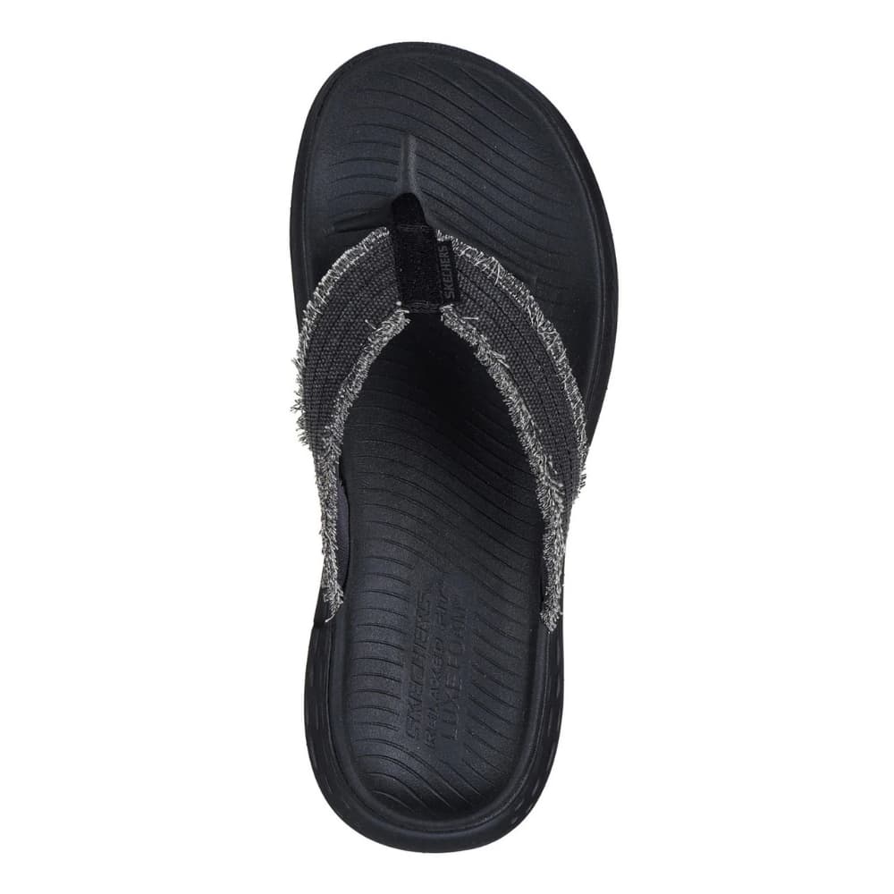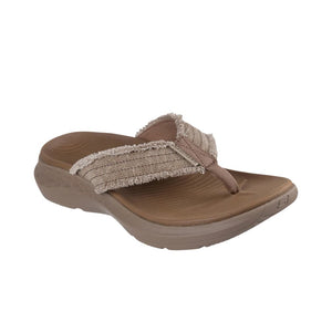 Easygoing days call for the laid-back style and soft support of the Skechers Relaxed Fit: Parson SD sandals, crafted with a frayed canvas upper and roomy fit. A Luxe Foam footbed and shock-absorbing midsole bring cushioned comfort, while the flexible traction outsole keeps every outing feeling effortless.