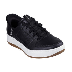 Get that ideal clean style with easy wearability in Skechers Hands Free Slip-ins®: Sport Court 92 - Distown. Designed with our Heel Pillow®, this court-style slip on features a leather and synthetic upper with a hands-free Skechers Slip-ins® molded heel panel, laced front, and a Skechers cushioned Air-Cooled Memory Foam® insole.