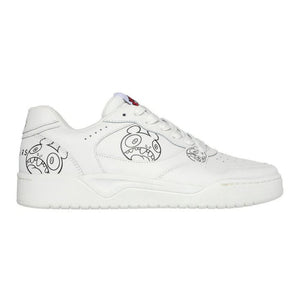 Get drawn into the imaginative world of Skechers Street™ x Vexx with our latest collaboration! Vexx has made Skechers his personal canvas, fusing his signature ""doodles"" seamlessly with our iconic footwear and apparel to create a collection bursting with vibrant colors and playful imagery. The Koopa Court - Volley Vexx Gasp fashion sneaker features a leather and duraleather upper with Vexx's signature ""doodles"" and a cushioned Skechers Air-Cooled Memory Foam® insole.