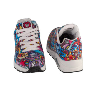 Let yourself be drawn into the imaginative world of Skechers Street x Vexx with our latest collaboration. Vexx a fait Skechers sa toile personnel et fusionné ses « scribbles » caractéristiques with nos chaussures et vêtements emblematiques to create a collection full of bright colors and playful images. Inspired by the artist's rough sketches, the Uno Process Sketch Fashion sneaker features a Durabuck synthetic upper with the Doodles feature, Skechers Air Cooled Memory Foam insole and a visible Skech-Air cushioned midsole. Vexx is a Belgian artist who redefines the limits of creativity. Known for its dreamlike and vibrant art in the doodle style, Vexx's & Quot Doodles perfectly combines imagination with modern. Creating a colorful cast of characters inspired by childhood influences, art history and pop culture, she blurs the lines between art up and down. His work has appeared in leading museums in Europe, the United States and Asia. Embark on a visual adventure with the Skechers x Vexx collection where art and style play