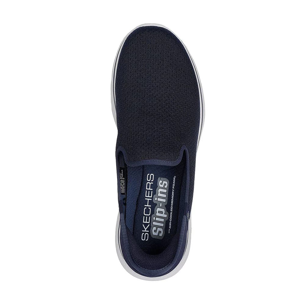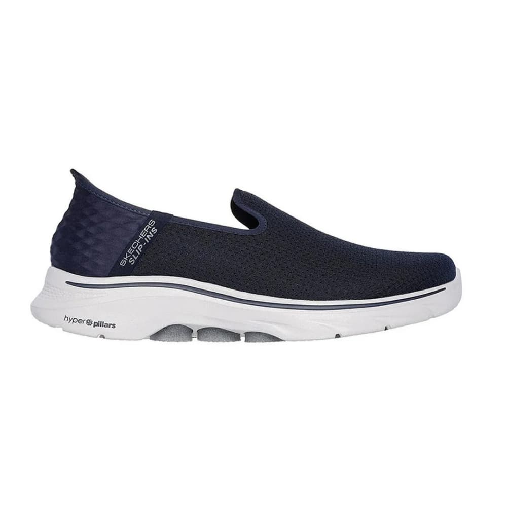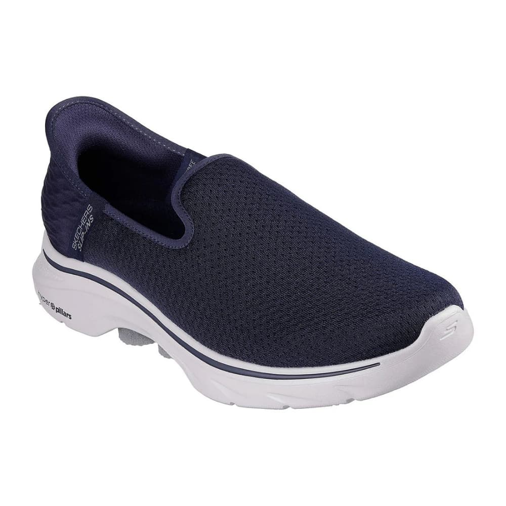 Step-in to convenient walking comfort and cushioning wearing Skechers Hands Free Slip-ins®: GO WALK 7™ - Daley 2. Designed with our exclusive Heel Pillow™, this vegan TOUCHLESS FIT® slip-on features a breathable monomesh upper with a Skechers Air-Cooled Memory Foam® insole, lightweight ULTRA GO® cushioning and Hyper Pillar Technology™.