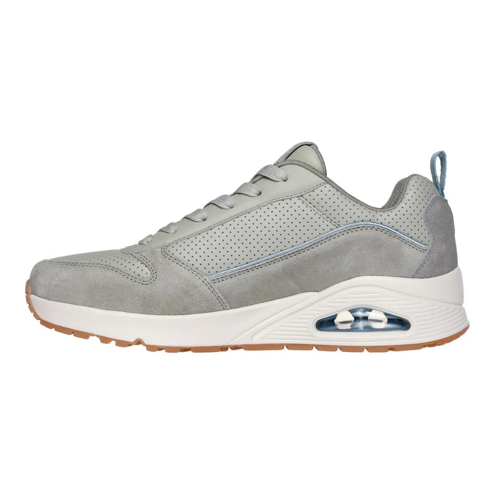 El estilo deportivo refinado se combina con la comodidad en Skechers Street™ Uno - Stacre 2.0. Esta zapatilla con cordones presenta una parte superior de gamuza y cuero sintético con una plantilla Skechers Air-Cooled Memory Foam® y una entresuela con airbag visible Skech-Air®.