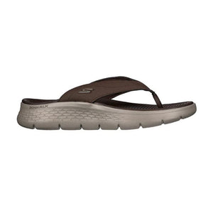 Take charge of your casual comfort wearing Skechers GO WALK™ FLEX Sandal - Vallejo. This 3-point walking thong sandal features a synthetic wide band upper with a contoured Goga Mat® footbed and lightweight ULTRA GO® cushioning.