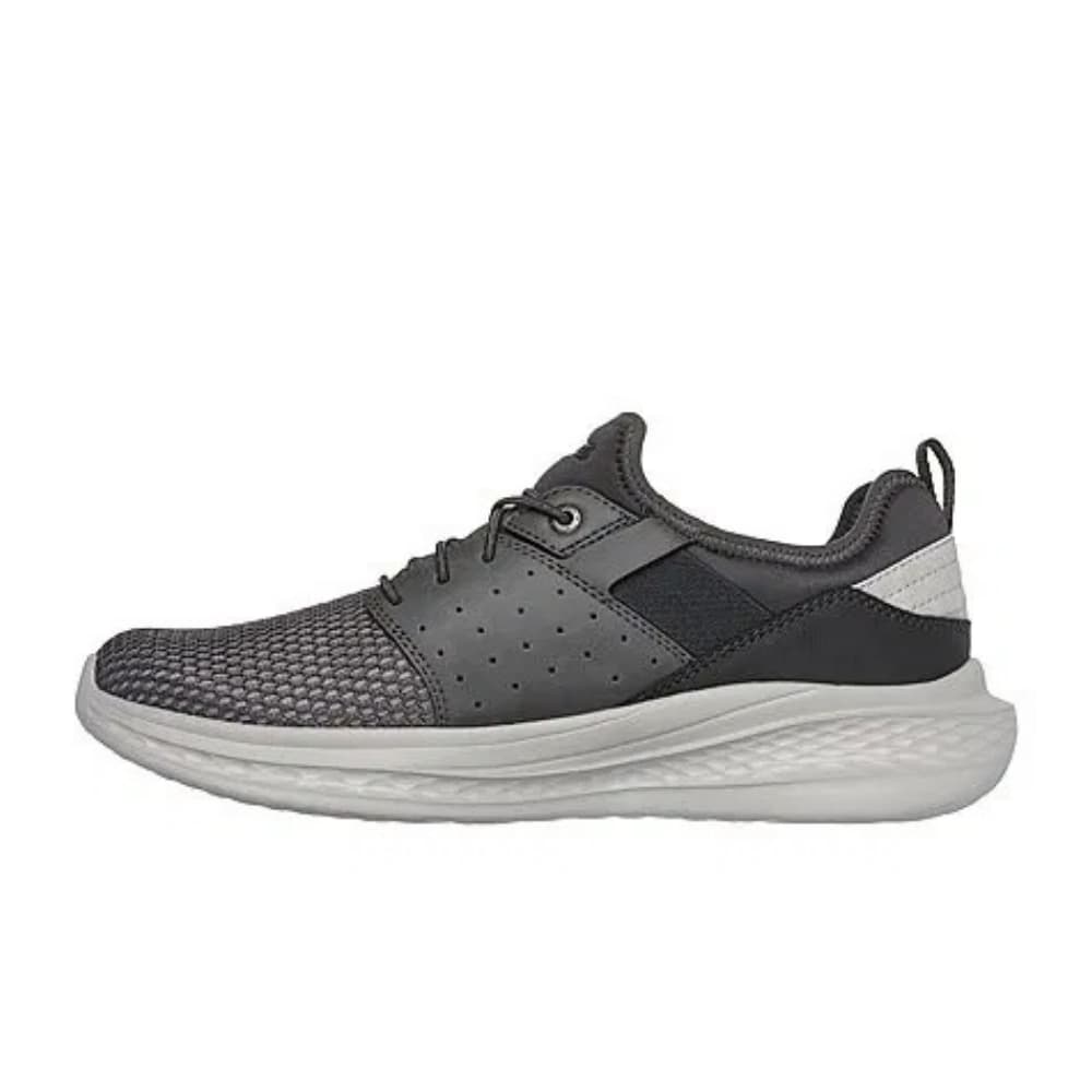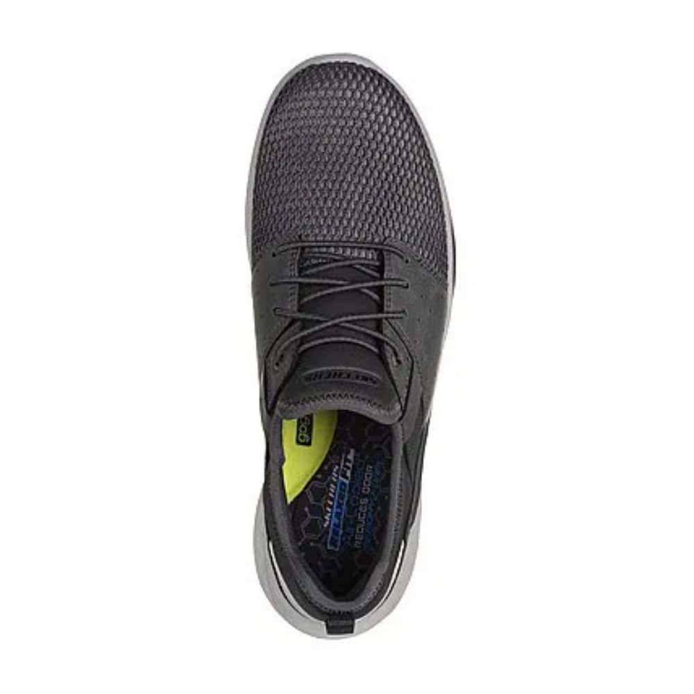 Classic modern style combines with comfort in Skechers Relaxed Fit®: Slade - Raymar. This stretch-laced style features a mesh and synthetic upper with a charcoal infused Skechers Air-Cooled Memory Foam® insole to help neutralize potential odors and a Skechers Goga Mat Arch™ for added support.
