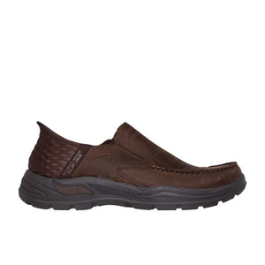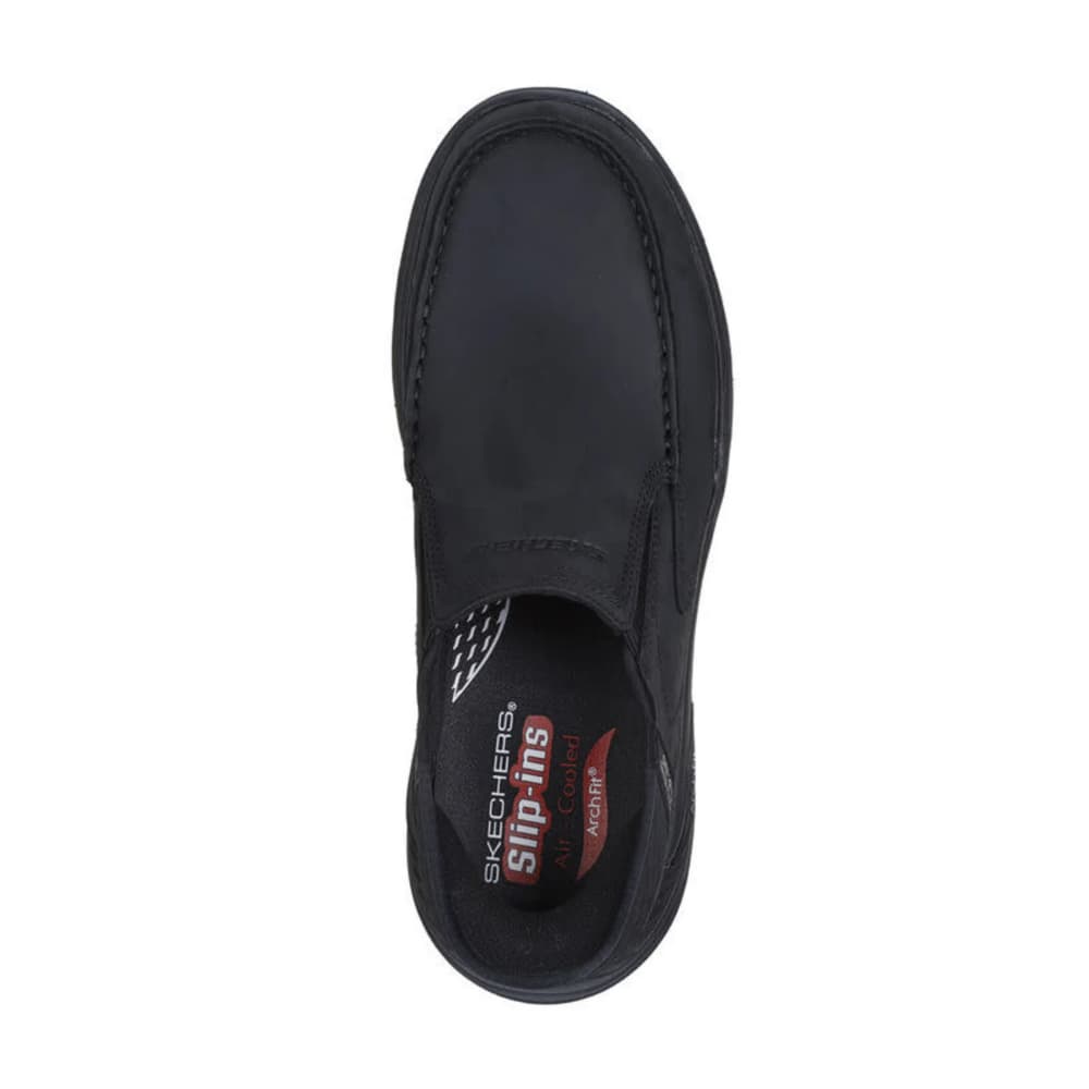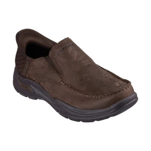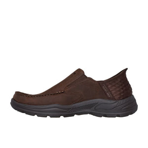 Step into easy-wearing comfort and classic style with Skechers Hands Free Slip-ins® Arch Fit®: Motley - Milo. Designed with an Heel Pillow®, this Relaxed Fit® moc toe style features a leather upper, and a cushioned Skechers Air-Cooled Memory Foam® insole.