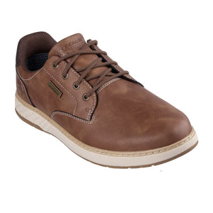 Classic style and comfort arrives in Skechers Waterproof Relaxed Fit®: Garlan - Pryor. Featuring a waterproof lace-up vegan leather upper with a charcoal-infused Air-Cooled Memory Foam® insole and Skechers Goga Mat Arch™ cushioning for added support.