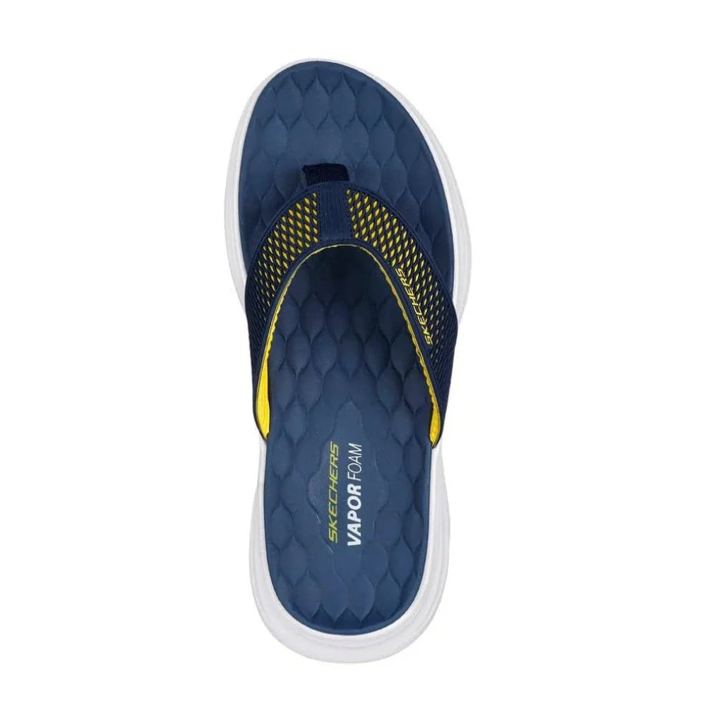 The Skechers Vapor Foam Sandal - Sayto offers relaxed comfort for warm days. This sporty thong sandal features a synthetic mesh upper and contoured, ultra-light Vapor Foam cushioning.