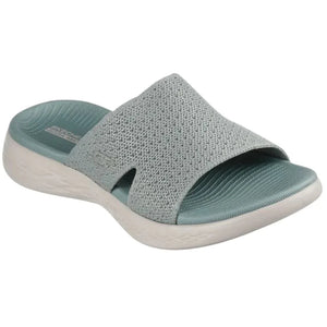 Welcome brighter days with light breezy comfort wearing Skechers On-the-GO 600 - Adore. This sporty slide sandal features a Stretch Fit® mesh upper with contoured Goga Mat footbed and lightweight 5GEN® cushioning.