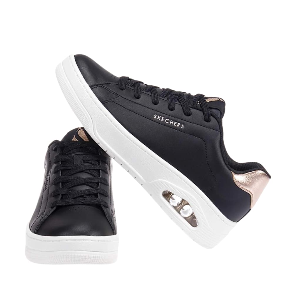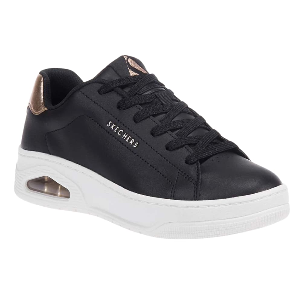 An iconic classic gets a fresh update in Skechers Street™ Uno - Courted Air. This lace-up court style sneaker features a synthetic duraleather upper with metallic trim, a Skechers Air-Cooled Memory Foam® insole, and a visible Skech-Air® airbag midsole.