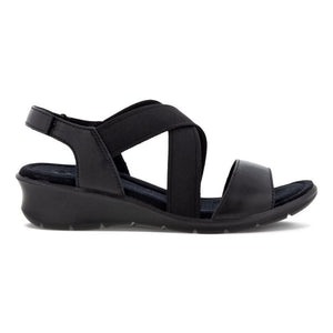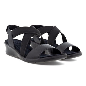 Stylish and entirely practical, the ECCO FINOLA Sandal has a wedge heel for a bit of height and a padded footbed for soft cushioning. The upper criss-crossing straps are made of a stretchy elastic material for a pliable, secure fit and easy on and off. Additionally, the ankle strap can be adjusted easily with the quick-fastening closure. Classic and comfortable, you'll want to wear these all summer long.