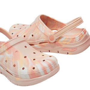 Walk with all-day supportive comfort wearing Skechers Foamies: Arch Fit® - Mystic Muse. This perforated marble print sculpted clog features an Arch Fit® contoured footbed and a dual-density outsole.