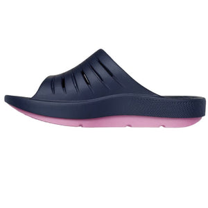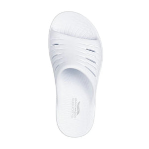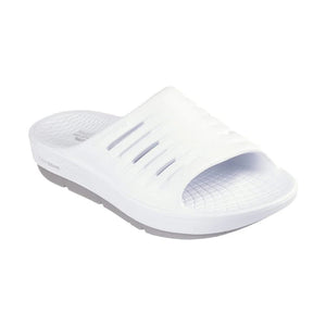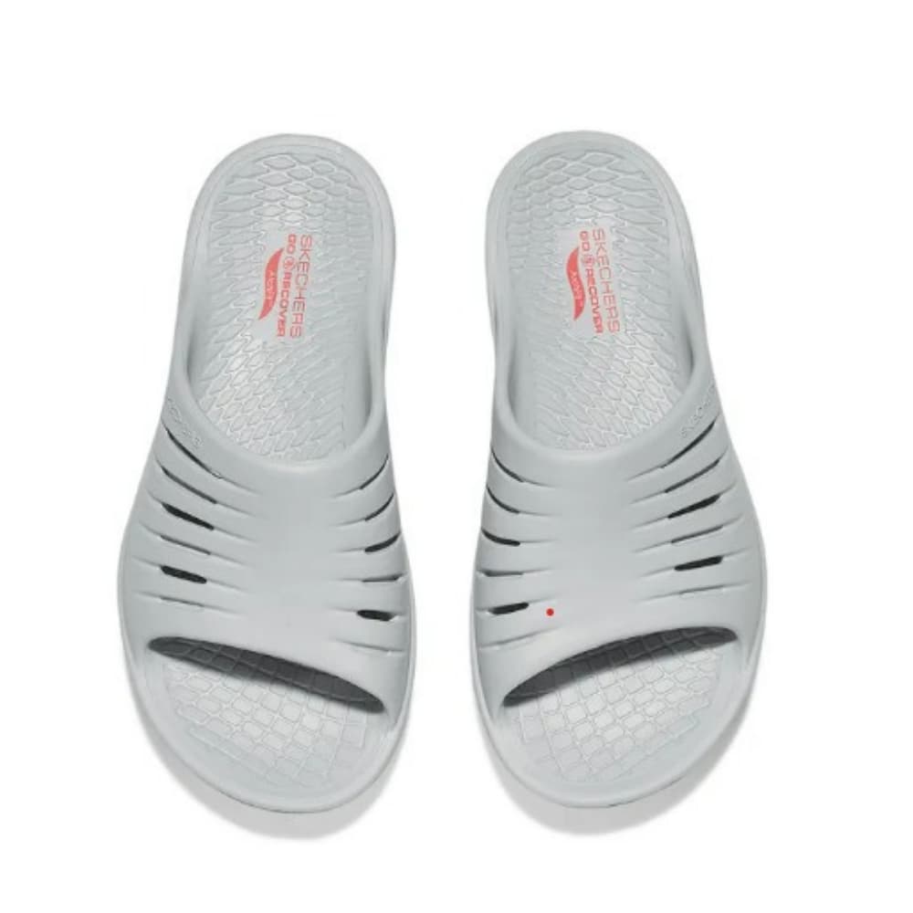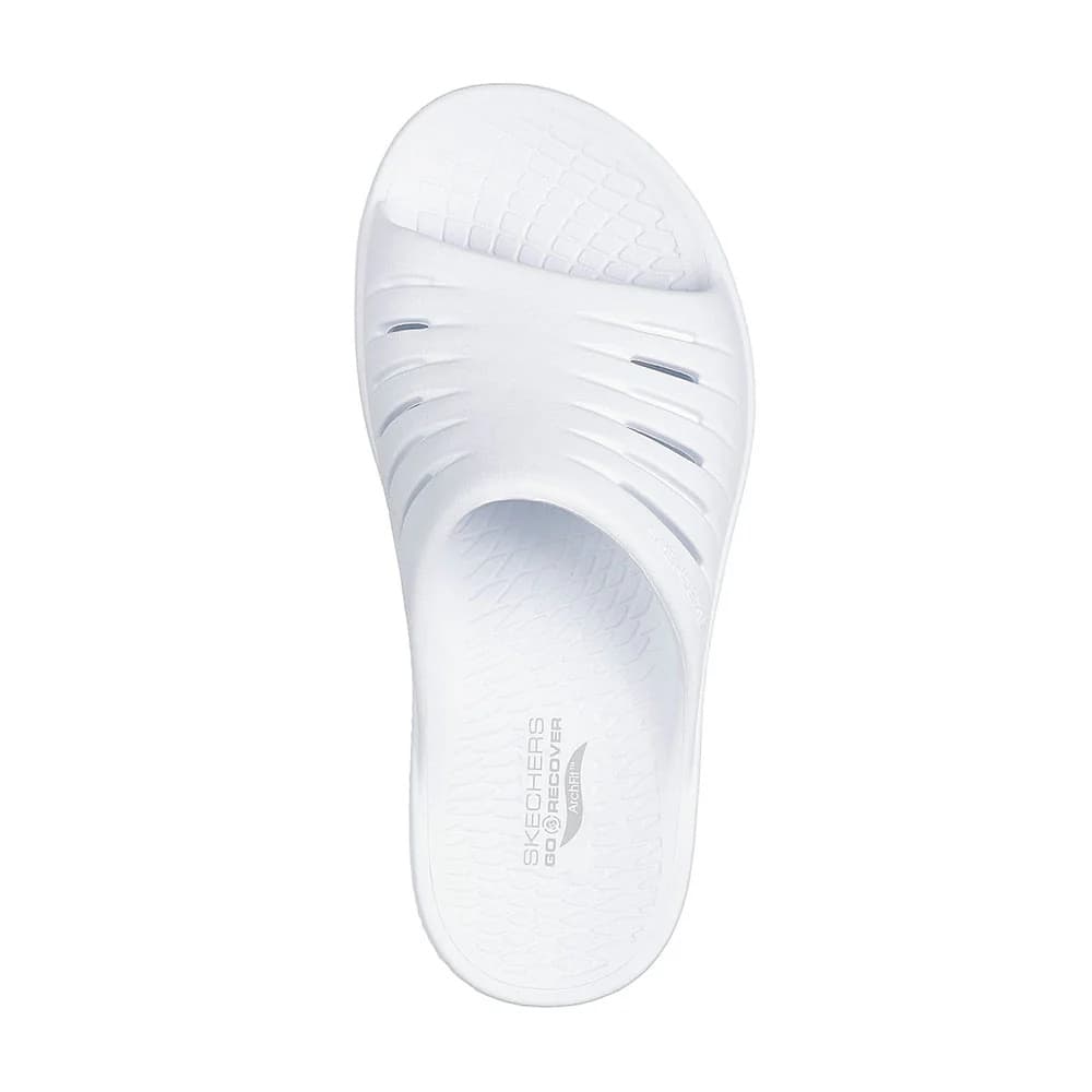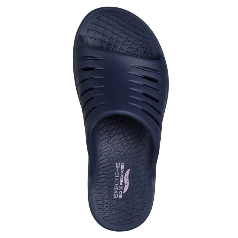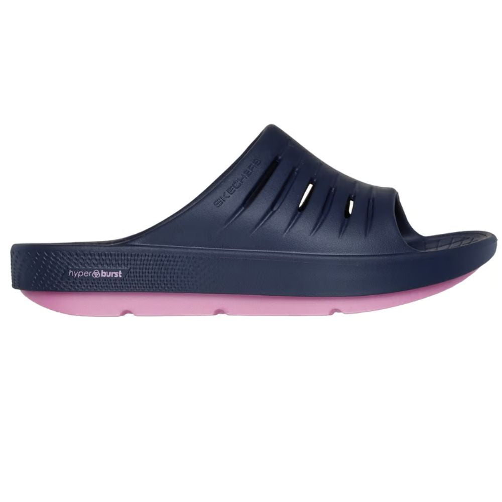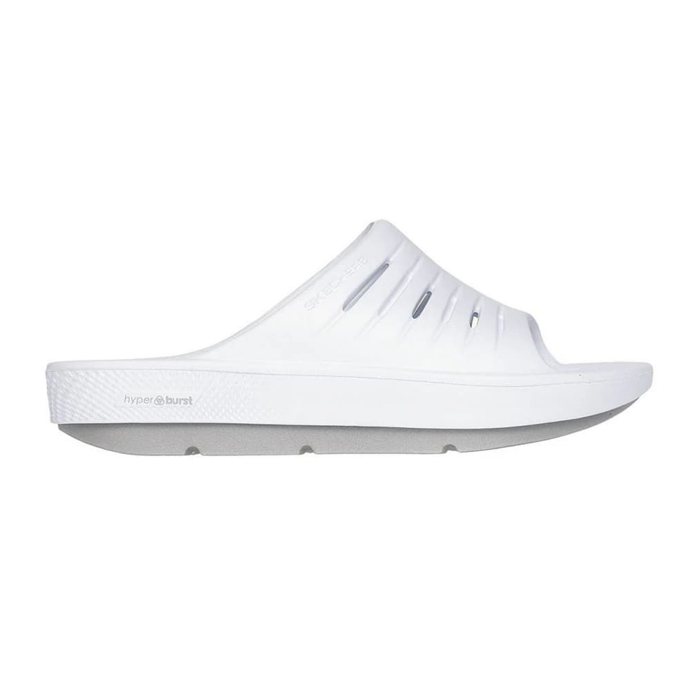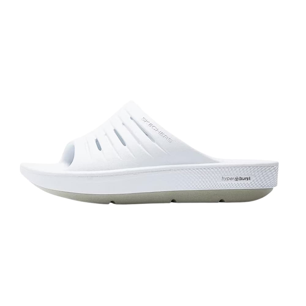 Relax in specialized comfort and style wearing Skechers GO RECOVER® Refresh. This athletic recovery slide sandal has been granted the APMA Seal of Acceptance and features a synthetic upper with linear perforations and premium HYPER BURST® foam with Arch Fit® support that redistributes pressure for impact reduction.