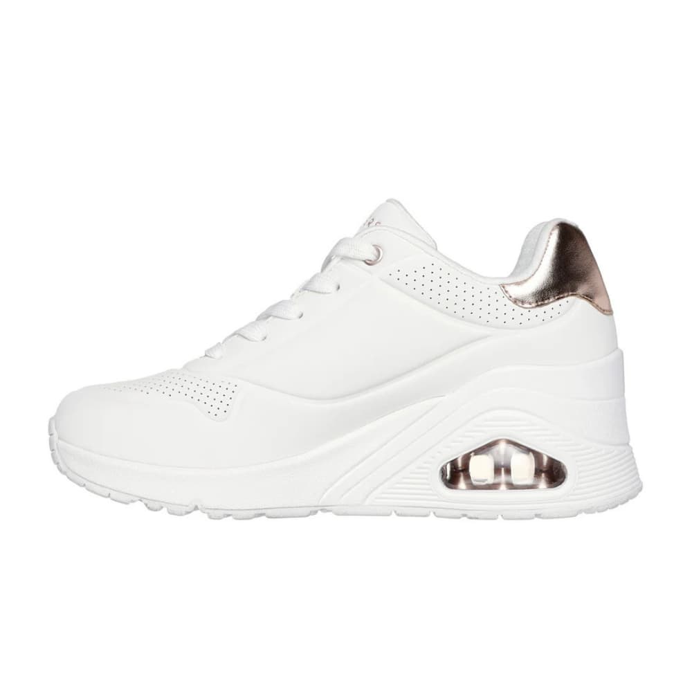 Update your wardrobe with a boost of comfort wearing Skechers Street™ Uno Wedge - HI Steps. This fashion style features a durabuck upper with metallic duraleather trim, Skechers Air-Cooled Memory Foam® insole, and a platform wedge with a visible Skech-Air® air-cushioned midsole.