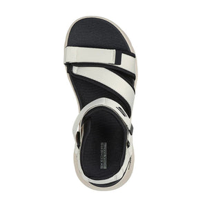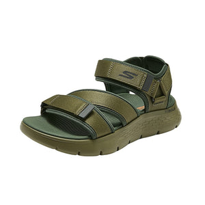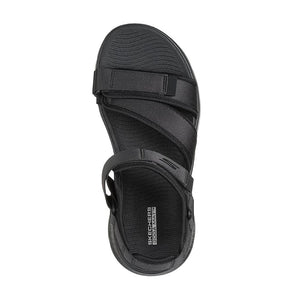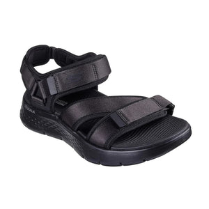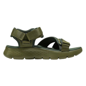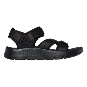 Strap in to casual walking comfort wearing Skechers GO WALK™ Flex Sandal. This sporty walking quarter strap sandal features a lycra upper, a contoured Goga Mat® footbed and lightweight ULTRA GO® cushioning.