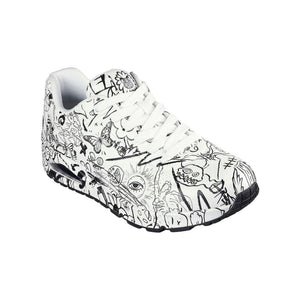 Get drawn into the imaginative world of Skechers Street™ x Vexx with our latest collaboration! Vexx has made Skechers his personal canvas, fusing his signature "doodles" seamlessly with our iconic footwear and apparel to create a collection bursting with vibrant colors and playful imagery. The Uno - Process Sketch fashion sneaker features Vexx's signature "doodles" and a cushioned Skechers Air-Cooled Memory Foam® insole.