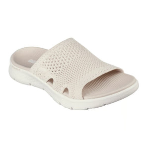 Choose the easy life in laid back style wearing Skechers GO WALK Flex™ Sandal - Elation. This casual comfort slide features a textured knit upper with a contoured Goga Mat® footbed and lightweight ULTRA GO® cushioning.