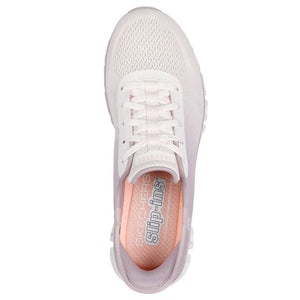Super flexible comfort and effortless style meet in Skechers Hands Free Slip-ins®: Glide-Step® - Excite. Designed with our exclusive Heel Pillow™, this vegan lace-up features an engineered ombre mesh upper, Skechers Air-Cooled Memory Foam® comfort insole, and a Glide-Step® cushioned geometric midsole.
